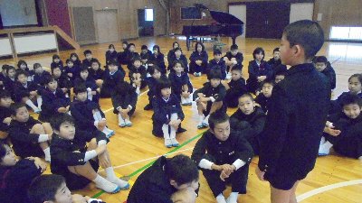 いつもの通り素晴らしい姿勢です。そして集会で意見を発表します。手がたくさん上がることもすてきですが、発表する人の方にきちんと体を向けて話を聞く態度も素晴らしいです。こんな心地よい集会、校長は毎月心待ちにしています。(笑)