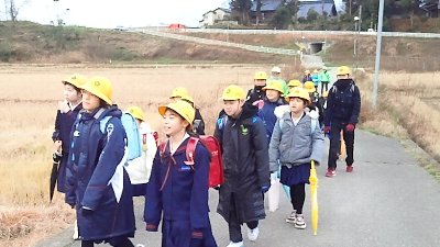 写真のような登校風景も来年10日まで見納めです。「防犯パトロール隊」のみなさま本年中は誠にお世話になりました。おかげさまで子どもたちは安全に安心して登校することができました。皆様方におかれましては、寒さ厳しき折健康にご留意なさって良いお年をお迎え下さい。本当に1年間ありがとうございました。