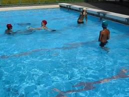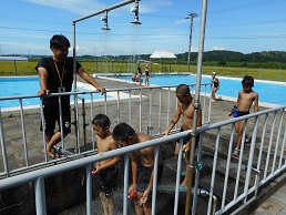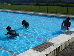 子どもたちに早くプールで楽しく泳いでもらいたいと、連日職員で水質改善のため清掃等を行い、徐々に水質が良くなってきました。