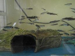 4年生が育てていたヤマメも大きくなっています。うさぎのあんこも元気です。