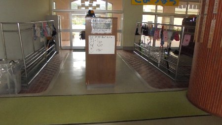 玄関のかさたてを見ると今日の天気がわかります。朝登校の時晴れていても帰りに雨が降りそうだと子どもたちはちゃんとかさを持って登校します。高学年は天気予報を見て、低学年はきっとお家の人が持たせてくれるのでしょうね。