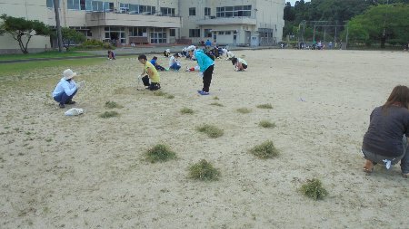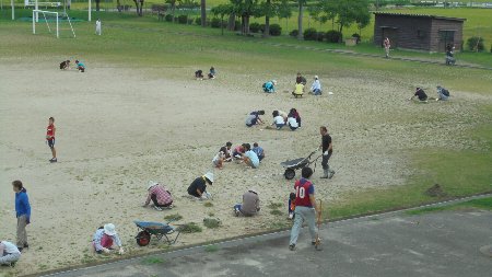内容は学校の除草作業では、行き渡らない細かなところ、運動会が来月実施なので運動場トラックの中、それと周囲の側溝の泥上げを予定しています。どうぞたくさんの参加お願いします。