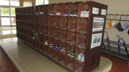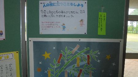 写真は、靴がきちんと揃っている下駄箱と今月の目標「人の役に立つことをしよう」の七夕バージョンです。