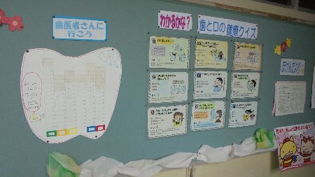 先週は、歯みがきテスター(みがき残しがあると紅く染まる)とプリントを配付しました。この休みにご家庭で取り組んで虫歯の予防をお願いします。