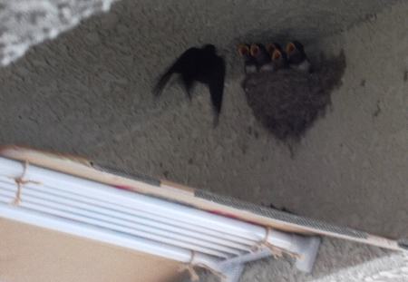 今朝は、校舎周りを異物などないか、朝一子どもたちが登校する前に点検しました。プールの周りでは、ツバメの親がせっせと朝ご飯を巣の子どもたちに運んでいました。近づくと親ツバメは、大きな鳴き声で 警戒します。巣からすっかり大きくなった子ツバメが顔を出します。今週ぐらいにうまくいけば巣立ちそうです。