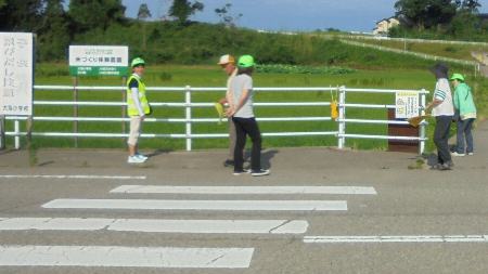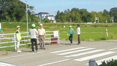 毎朝、安全ボランティアの方が各地区から子どもたちと一緒に歩いて登校して安全を見守って下さいます。