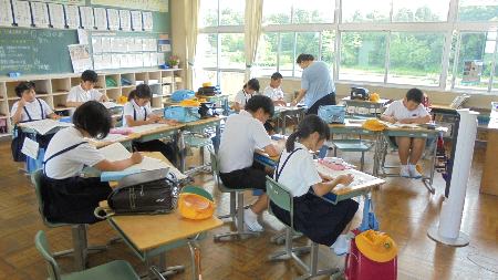 週に一度、6限が終了しても学習が続きます。学力向上のため放課後学習に取り組んでいます。写真は6年生の様子です。担任だけでなく校長教頭も指導します。今回は春にじっしされた全国学力テストの復習を2週にわたって行いました。