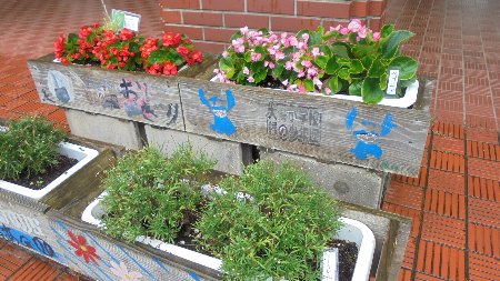 プランターの模様替え、花の植えかえをしたことは先日お知らせしました。園芸ボランティアの道原さんが一つ一つのプランターに花の名前の名札を作ってきてくださいました。ありがとうございます。校内でもすこやか委員会が花の名前を紹介します。