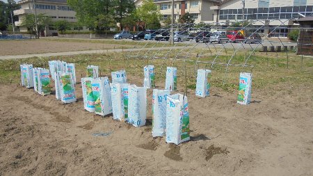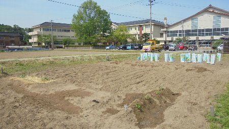 手前にはみずほ学級のスイカやなっぱが見えます。みずやりたっぷりでした。