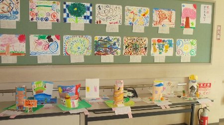 図工などいろいろな学習でたくさんの作品が出来上がり、掲示や展示が行われています。近くに来たときはお立ち寄りください。