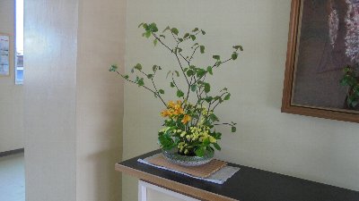 2016年4月18日 19時30分毎日、職員玄関にすてきな「生け花」が飾られています。これは毎週ボランティアの方が生けてくださいます。今朝もおいでて花器から花まで持参していただきました。来客の方々から「これは誰が生けているのですか」とよく聞かれます。お名前は伏せてくださいとお願いされていて、今日までお知らせすることはありませんでした。今日はお許しをいただきました。大海小学校の生け花ボランティアは細川さんとおっしゃいます。細川さんこれからもよろしくお願いします。
