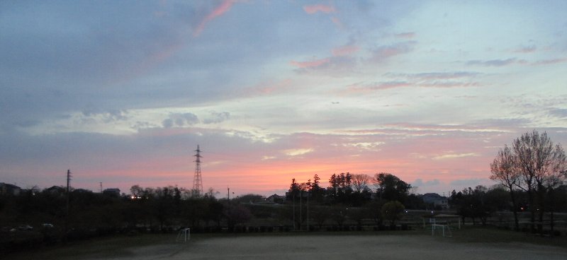 今日月曜は昨日に比べ少し肌寒かったですが、穏やかな天候となりました。夕方西の方を見ると見事な夕焼け、雲も紅く染まってとてもきれいでした。明日も良い天気です。