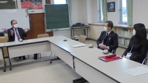学校・子ども達の様子を見においでました。視察後は感想やアドバイスをたくさんいただきました。いつ来ても良い伝統が感じられるとたくさんほめていただきました。地域とたくさん関わった特色ある質の高い教育を続けていって欲しいと励ましの言葉をいただきました。