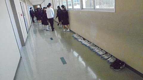 1限目の休み時間、トイレがいつものように・・・まだそうじもしていないし、昨日までは無かったし。今年も良い子ども達が大海小で育っていく予感がします。廊下に並んだズックもご覧のとおり。