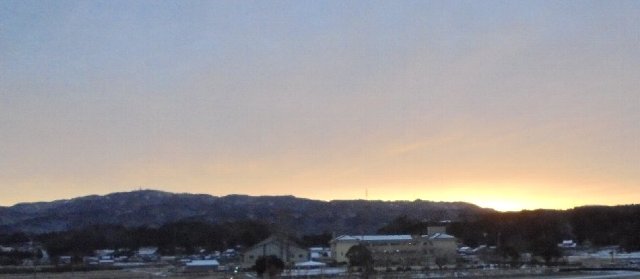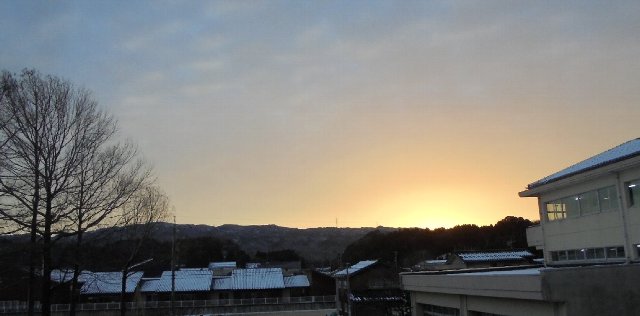12月の頃に比べて少し日の出時刻は早くなったのでしょうか。今朝の朝焼けはとってもきれいでした。子ども達が登校場所に集まり出す時刻ぐらいでした。ほんの数分しか見ることができないので、早起きをして得したかなという気持ちになりました。あまりにきれいだったので4枚、どうぞご覧になって下さい。