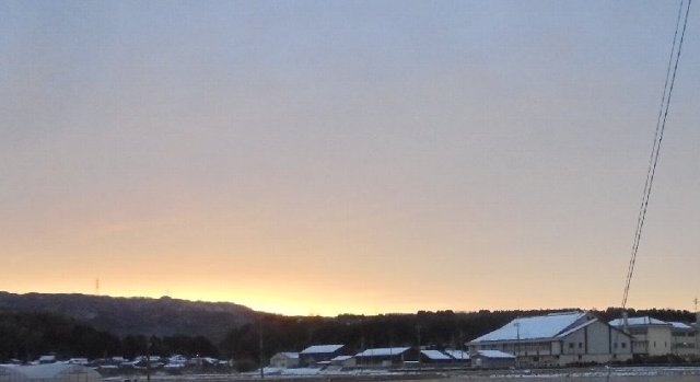 2019年1月10日 12時58分 12月の頃に比べて少し日の出時刻は早くなったのでしょうか。今朝の朝焼けはとってもきれいでした。子ども達が登校場所に集まり出す時刻ぐらいでした。ほんの数分しか見ることができないので、早起きをして得したかなという気持ちになりました。あまりにきれいだったので4枚、どうぞご覧になって下さい。