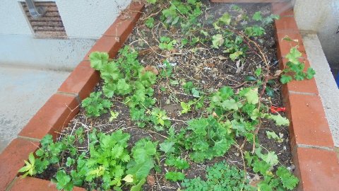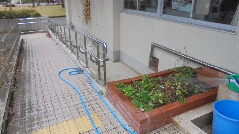 体育館前の小さな花壇に来年花が咲くのを期待してゼラニウムをたくさん挿し木しました。もっと早くしたかったのですが、いろいろな花の種取りが遅くなってしまいました。