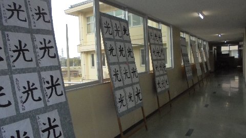 2018年12月13日 11時15分 今年から来年、年をまたいで河北郡市作品展が各学校に巡回しています。学校代表で大海小の子ども達の作品も回ってきます。よその学校の子ども達の作品を見て、自分の力を向上させます。よかったら見においで下さい。子ども達を通してお知らせするようにします。