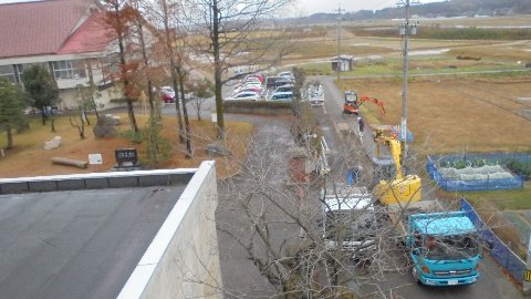 工事関係者との打ち合わせ、現場での誘導、事故防止に万全を期しています。お家でも工事現場に近寄らないよう話してみて下さい。しばらく登下校に影響する場所は、学校玄関前道路と縦貫道トンネルから運動場に向かう道路です。児童の登下校の時間帯は工事関係者と学校による誘導も行われます。