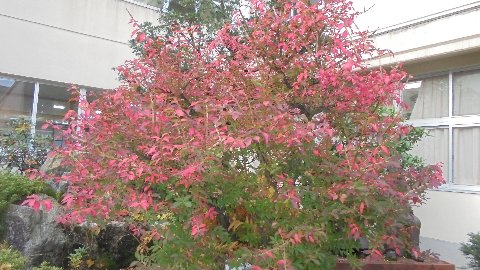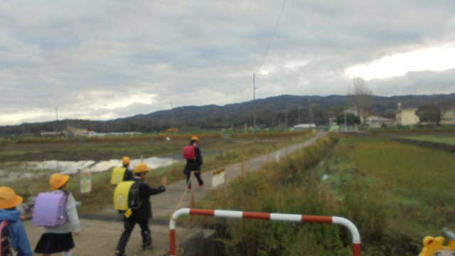 紅葉がきれいでした。今日は天気が良くなりそうです。子ども達は毎日この景色を見ながら元気に登校です。