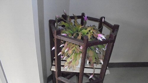 2018年11月30日 16時31分 寒くなってきましたが階段踊り場でけなげにサボテンが花をつけ始めました。こんなところにも注目できる大海っ子であってほしいものです。