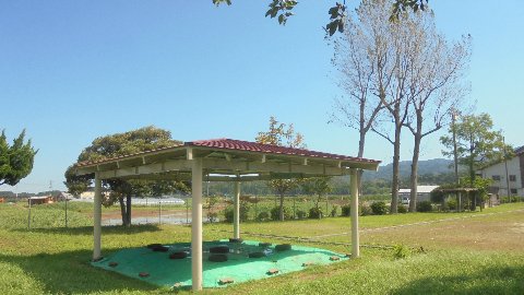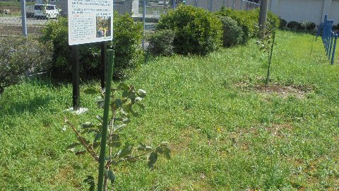 昨年植樹した紋平柿の木、今年改装した相撲場、どちらも異常なし、あの強風に負けませんでした。とくに相撲場は風が吹く度に屋根の一部が飛散していたのが、今は安心できます。