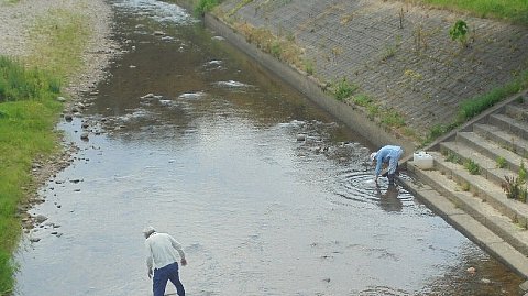 川で泳ぎました