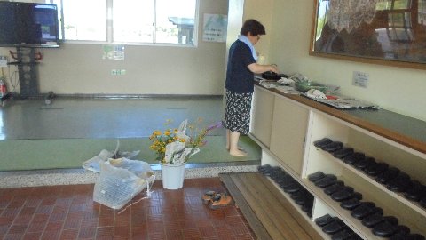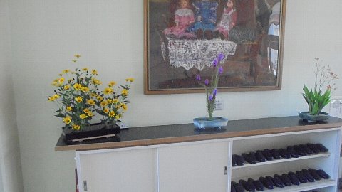 今日も生け花ボランティアの細川さんが花を生けに来校して下さいました。毎週毎週ありがとうございました。次回は9月にスタートして下さいます。
