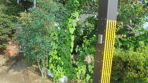 順調に伸びています。高さも2mを越しています。プランターなので水の乾きが早くて追いつきません。変わり種の花も咲いています。