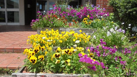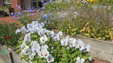 大海小の玄関のプランターの草花は根性があります。パンジーやビオラと行った春の花ががんばって咲き続けています。この季節になかなか珍しいと言っていただいています。なにかカンフル剤でもあるのでしょうか・・昨年も夏のサルビアなどが11月まで咲いていました。そろそろ植えかえしないと夏の草花がしびれを切らしているかも(笑)