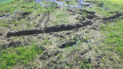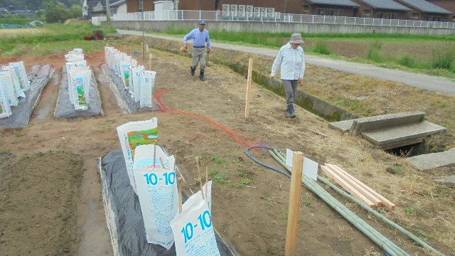 いいえ、ここは6年生のジャガイモ畑です。水はけが悪く、水切り排水路を作って苦闘しています。はたして無事実るのでしょうか、また報告します。