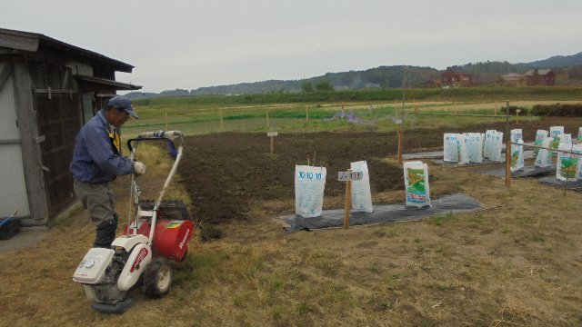 朝早くから耕耘機持参で畑の手入れをしていただきました。子どもたちが登校する前には終了して帰って行かれました。盛戸さんはいつも学校園を気にかけて下さっています。今日はまだ苗を植えていないところの草が伸びてきたので、土おこしをして下さいました。