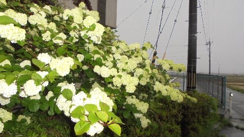 きれいな花が咲きました。なんというはなでしたっけ、手まり・・・おしえてくださいね。横を見ると梅が実をつけ始めています。今年は何にして食しましょうか。大きくなるのが楽しみです。