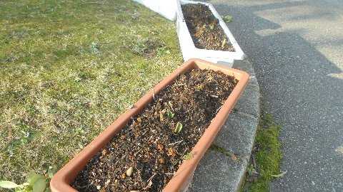 チューリップのかわいらしい芽が出ています。雪の下で春を待ちわびていたのですね。