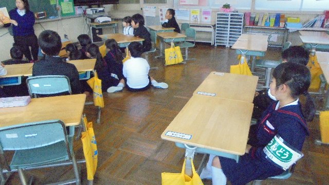 今朝は本の読み聞かせの日でした。担任以外の先生が回ってきます。どんな本を読んでもらえるか楽しみですが、どの先生がやってくるかも楽しみです。おや、あいさつ運動名人腕章をしている子もいますね。