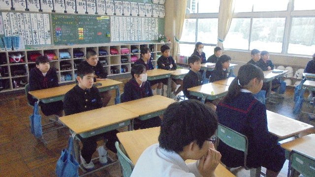 花の横には、おやっ、かわいらしいひな人形が飾られました。細川さんが中沼の松本さんから学校に飾ってと託されたものでした。さっそくお礼の電話をしました。地域の皆さんに愛される学校であり続けたいものです。