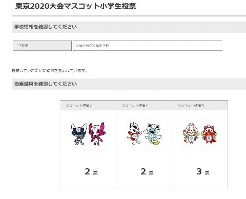 先日からお隣の韓国で冬のオリンピックが開幕しました。次は2年後の東京オリンピックです。ずいぶん前になりますが、大海小学校の全教室で東京オリンピックのマスコットを話し合って推薦しました。この休みにネットから投票しました。