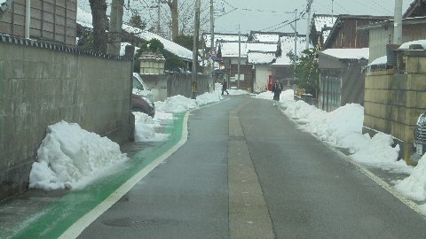 町中の除雪がずいぶんすすみました。子どもたちが普段歩く歩道やグリーンゾーンも見えてきました。まだまだ気を緩めないで、車が来たらしっかりよけるんだよ。