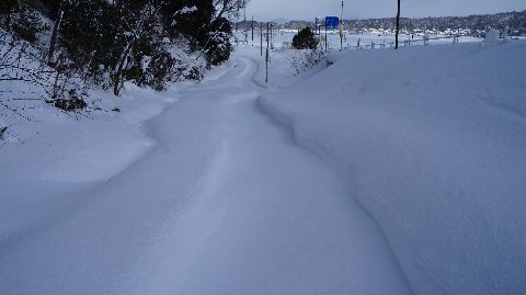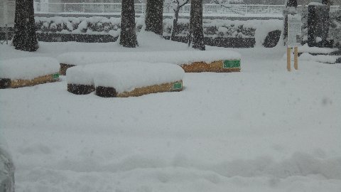 時々ありますが、ご容赦願います。写真は今日の正午前の通学路です。明日までこれ以上降らないと良いのですが。