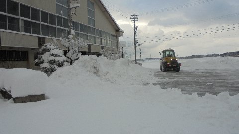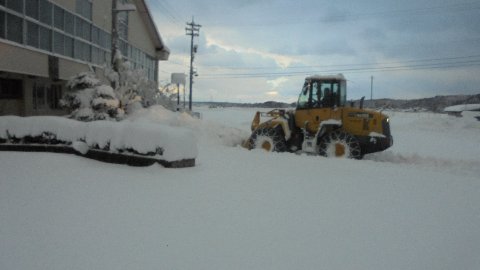早朝より体育館前の駐車場を重機で除雪してもらいました。昨夜はここが雪だらけでスペースを確保できなかったので、PTA関係の部会を中止しました。今日は学校運営協議会が夕刻予定されています。これでだいじょうぶです。