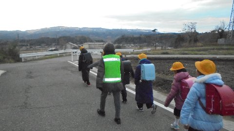 今日も元気に登校。防犯ボランティアのみなさん今年もありがとうございました。明日から冬休みになります。しばらくお休みですが良いお年をお迎え下さい。暮れの挨拶ちょっと早かったですね、今日の下校もお願いします。