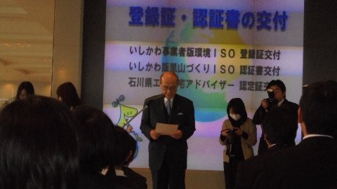 昨日、石川県の環境教育やエコ活動に努力している団体の表彰式に出席してきました。皆さんもご存じの通り大海小学校は環境ISOに加え、石川県版里山ISOを取得し活動してきました。