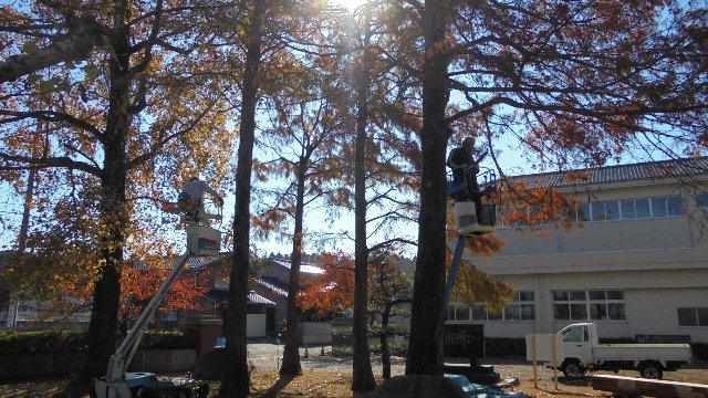 今日は、土曜参観の振替休日で子どもたちは休みでした。その合間をぬって教育後援会メンバーの区長さん達が奉仕作業をして下さいました。平日にもかかわらず西田会長を先頭に早朝より作業ありがとうございました。おかげさまですっきり、明るい大海小学校になりました。トラックで7杯分の枝を捨てに行くのが大変でした。