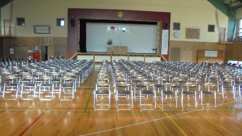 昨日よりPTA役員の方々、子どもたちにも手伝ってもらい、会場の準備を行いました。準備万端です。