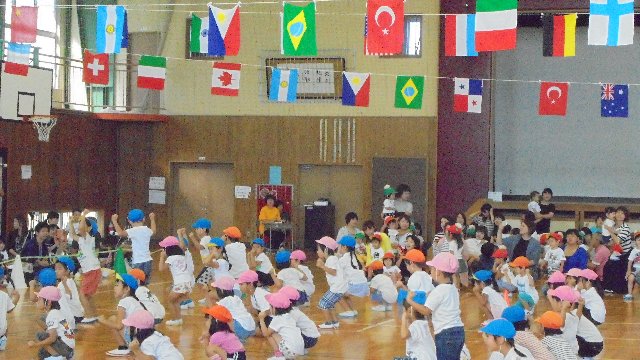 体育館を使って保育園の運動会が開かれました。たくさんの応援の皆さん、小学生のお兄さんお姉さん、大賑わいでした。