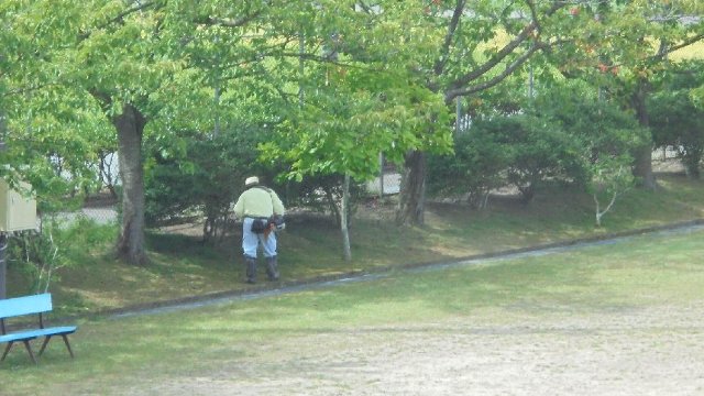 校地の草を管理公社の皆さんに刈り取ってもらっています。夏休み奉仕作業はグランドの草がターゲットでしたが、今回はフェンスまわりの草むらを・・・蛇のすみかが無くなって安心、子どもたちの大好きなバッタのすみかも・・・大変です。(笑)