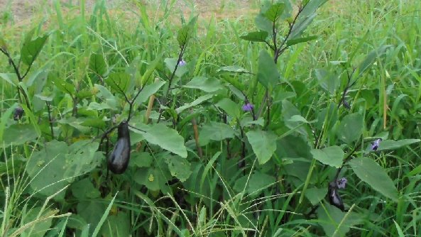 いつもなら水やり当番がいただいていく野菜。お盆は、水やり当番が休みだったのでこんな大きななすが育ったままになっています。明日からプールも再開、畑をのぞいてね。誰かいらんかねぇ~。