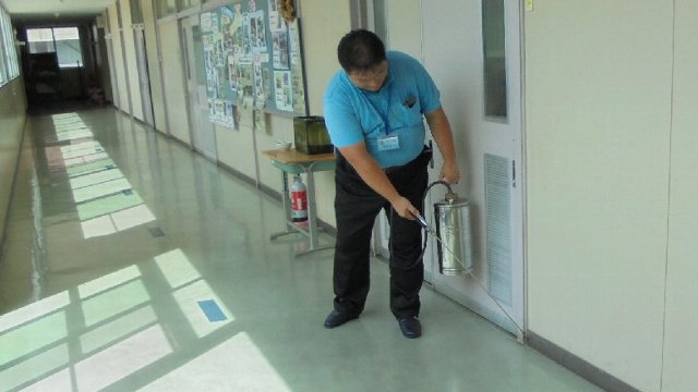 今週お盆の人が少ない時期に校内全域を専門の人に消毒してもらいました。ターゲットは、ゴキブリや害虫、それにネズミです。以前はネズミの糞らしきものが見つかったそうですが、今年はゴキブリの死骸はもちろん糞なども皆無だったと報告を受けました。配膳台もきれいにそうじ、半数の配膳台は新しいものに入れ替わります。