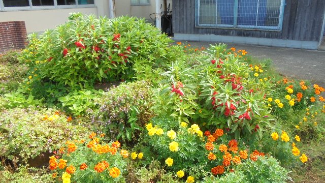 20日日曜日、早朝ですが6時より校庭の草むしりを中心とした活動を行います。休日の朝おいそがしいと思いますがよろしくお願いします。持ち物など詳細については、以前配布しました案内の紙を確認下さい。運動場側の花壇も去年はきれいにしていただきました。今年はご覧の通り花がたくさん咲いていますが、所々草が生えています。運動場も運動会を1か月後に控え、きれいになるといいですね。