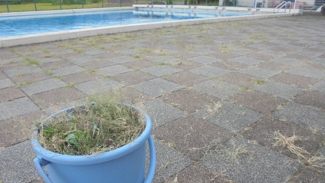先ほど、上記のメールを発信しました。ご理解のほどよろしくお願いします。プールをのぞくと昨日早速むしってくれた草がバケツいっぱいに・・・監視の保護者の方も参加して下さいました。日曜日の親子奉仕作業もよろしくお願いします。晴れて、涼しいといいですね。